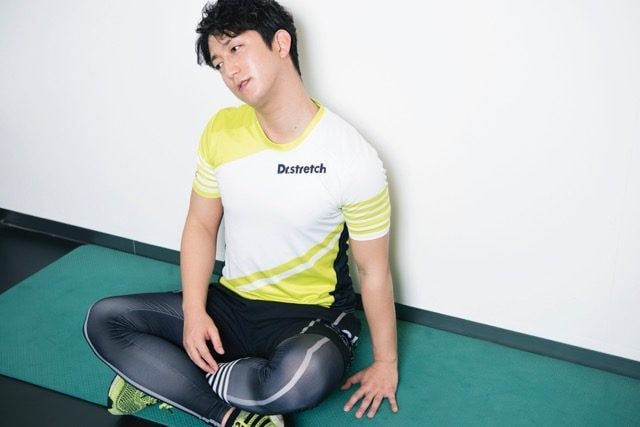 同様に反対側も実践します。なお、期待する効果をきちんと得るためには「首を倒す際に手のひらを床に着けた状態を常にキープすること」がポイント。置いた手のひらが床から浮いてしまわないように注意しましょう。フェイスラインの印象は首まわりのコンディションに左右されるもの。短時間でもこまめに動かして、巡りやすい状態をキープすることを意識してください。<ストレッチ監修:コシバフウタ(トレーナー歴3年)>