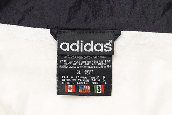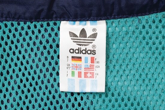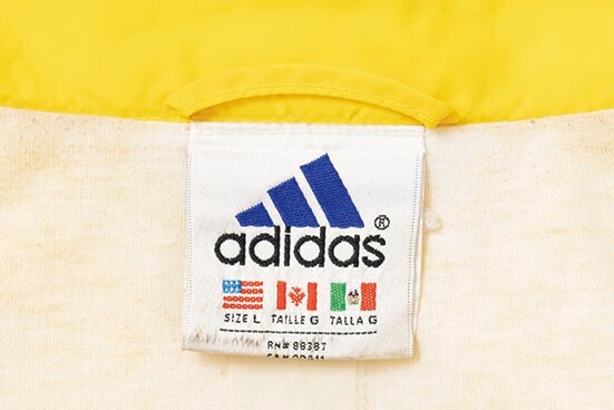 シルバーの濃淡でロゴを表現したタグ。横長で“adidas”の文字のみのタグも存在する。古着市場で人気が高く、アイテム数も豊富な時代である。