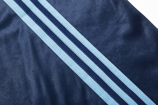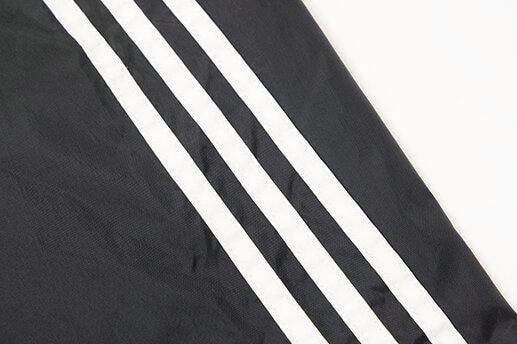 トラックジャケットやパンツなどのスリーストライプスは、1本のニットテープに3本のラインが織り込まれていた仕様が基本だった。