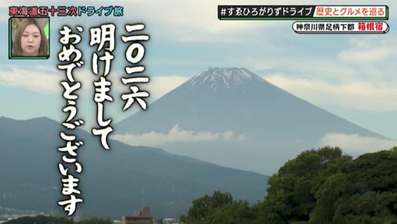 三島の名前の由来となった三嶋大社で名物の縁起餅とお守りを買い、次の神奈川県「箱根宿」に向かう南條と三島。すると、これまでなかなか拝めなかった富士山の雄大な姿が初めてクッキリと見え、2人のテンションはアゲアゲに!