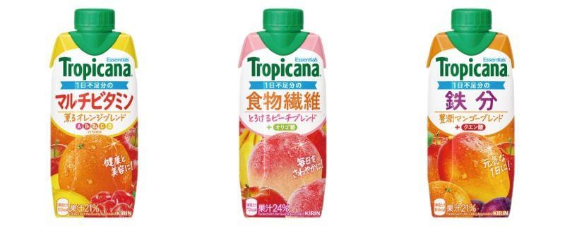 4つめの対象商品は、「トロピカーナエッセンシャルズ」の「マルチビタミン」「食物繊維」「鉄分」(各330ml)です。