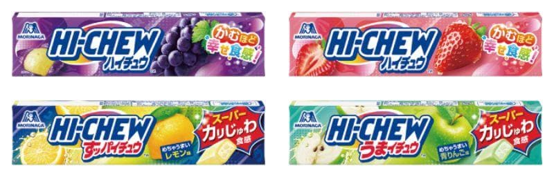 いずれか1個を購入すると、「ハイチュウ」の「グレープ」「ストロベリー」、「すッパイチュウ レモン味」、「うまイチュウ 青りんご味」のいずれか1個と引き換えられる無料券がもらえます。