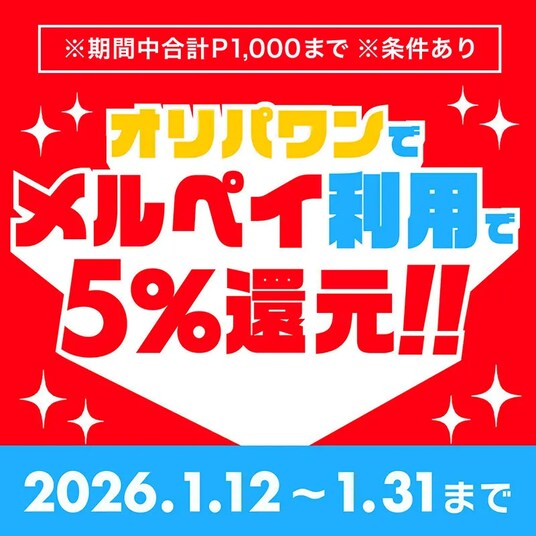 キャンペーン期間中にエントリーのうえ、オリパワンでメルペイのネット決済(メルペイ残高・メルカリポイント・メルペイのあと払い)を利用すると、条件を満たした決済がすべて還元対象となります。