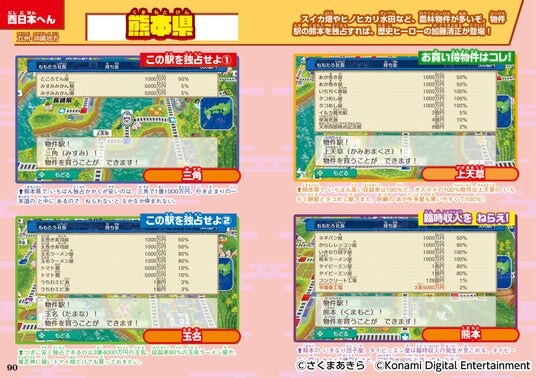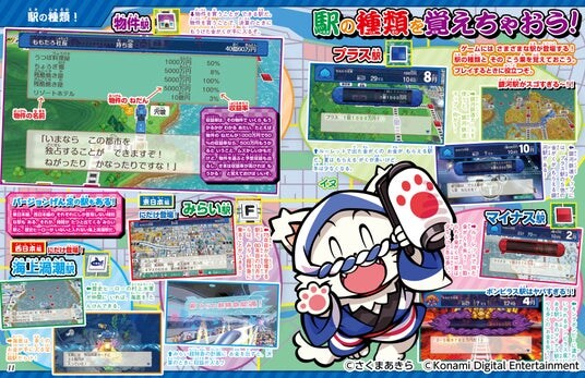 ゲームで重要な各種「駅」の説明や、勝負で重要な要素「カード」「歴史ヒーロー」「名産怪獣」をピックアップして解説、貧乏神がどんなことをしてくるのか、勝つための大事なテクニックの紹介など、ゲームのプレイに役立つ情報が満載です。