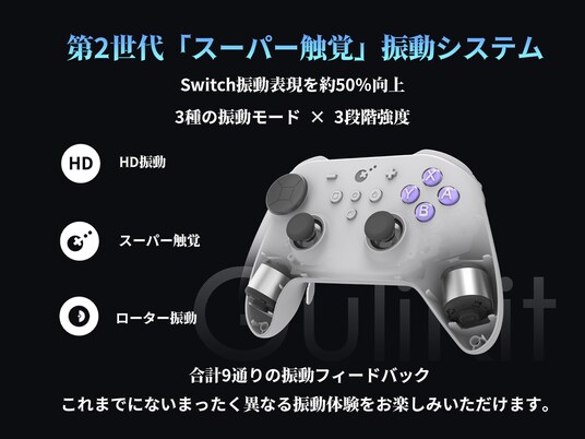 さらに、GuliKit 独自のスティック跳ね戻り防止モードを搭載。スティックを離した際の不要な反動入力を抑制し、高精度な操作が求められる競技シーンで高い安定性を発揮します。