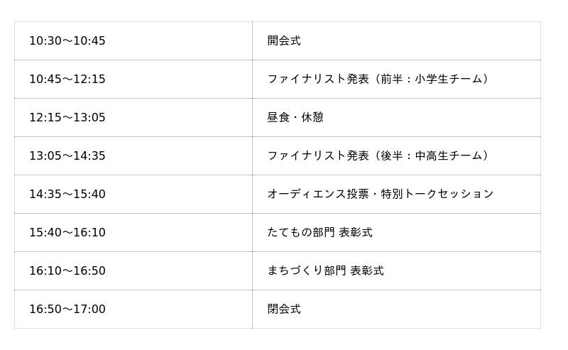16:10からの「まちづくり部門表彰式・閉会式」にご参加いただくと、