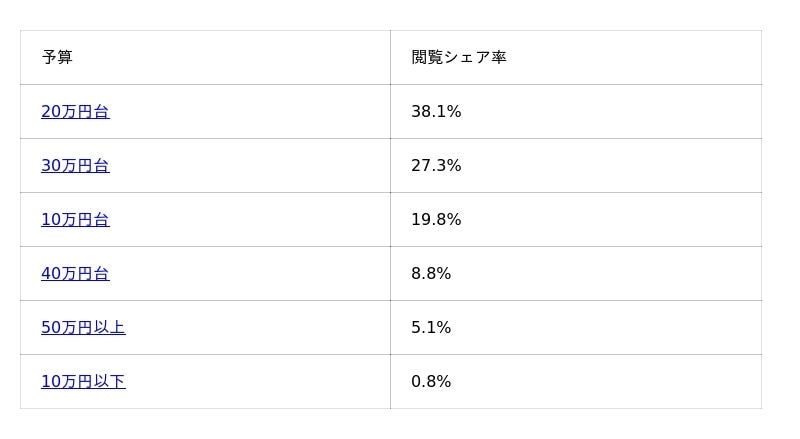 価格帯別では、20万円台のゲーミングPC が最も高い閲覧シェアとなりました。