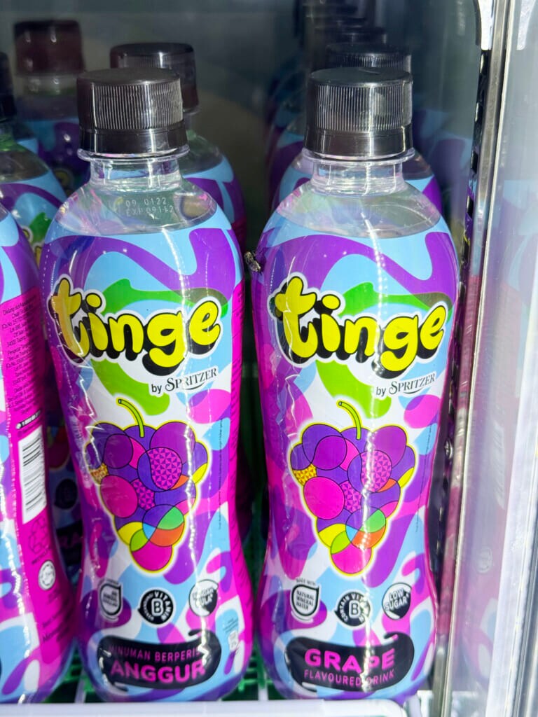 マレーシアのコンビニに行くと、異様といえそななほどたくさん売られているペットボトルのドリンクがあるのです。それが「Tinge」です。マレーシアに行ったことがある人なら、見たことがあると思います。
