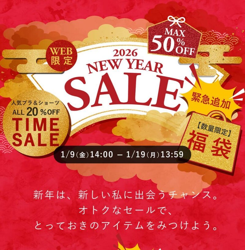 チュチュアンナの公式通販ストアでは、2026年1月19日13時59分まで「NEW YEAR SALE」を開催しています。