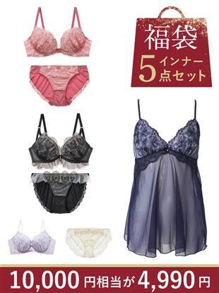 単品ブラ、ブラ&ショーツセット2点、キャミソール、単品ショーツの計5点がセットになった豪華な福袋が緊急追加されました。なんと、1万円相当が4990円で手に入るビッグチャンス。