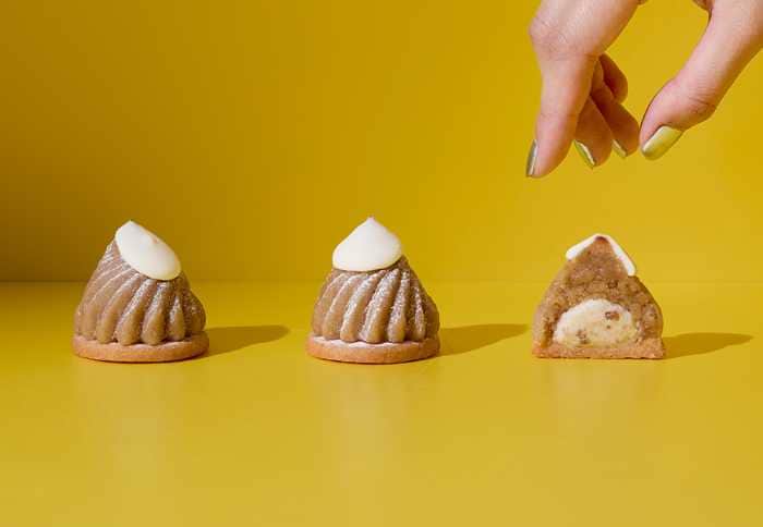 和栗クリームを贅沢にしぼった“ひとくち焼きモンブラン”。