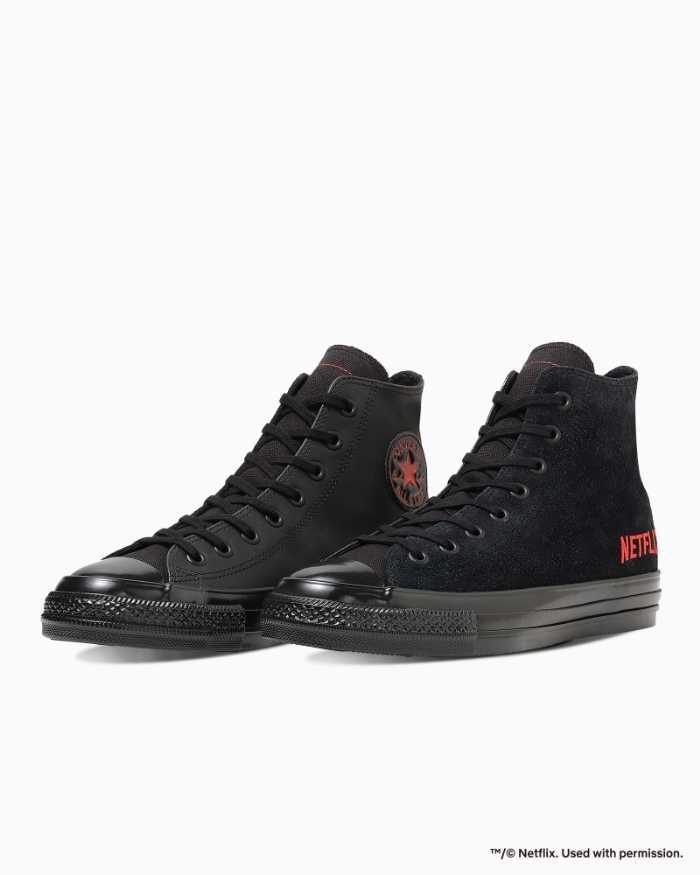 商品名はALLSTARAGEDHI/NETFLIX、価格は22,000円(税込)。サイズは22.0~28.0cm、29.0cm、30.0cm、カラーはブラックのみの展開です。