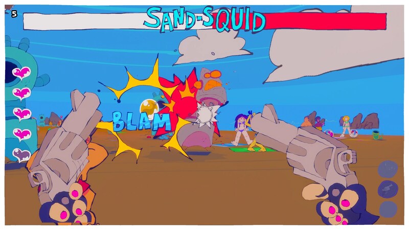 本作は、カラフルでクレイジーなブーマーシューターであるだけでなく、6万行を超える会話テキストを収録したビジュアルノベル的側面も持ち合わせています。また、本作は生成AIの使用に対する問題を提起し、人の手によるアート表現の価値を訴える作品でもあります。