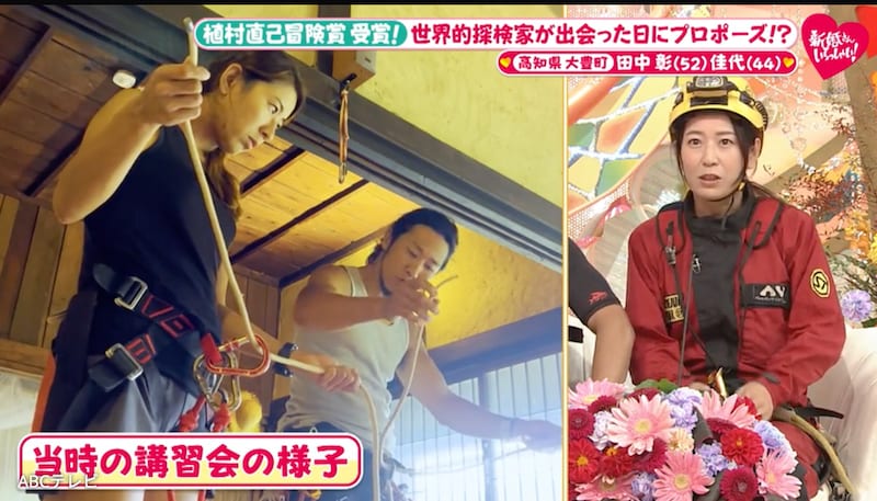 1月11日放送の『新婚さんいらっしゃい!』は、世界で活躍する探検家ご夫妻が登場。淡路島出身の夫は数々の険しい渓谷を制覇してきた、キャニオニング(渓谷下り)の専門家、田中彰(52)さん。2023年には、標高7,000m級の山々に囲まれたヒマラヤの“悪魔の谷”セティゴルジュを人類で初めて完全踏破! その功績が認められ、探検家の最大の名誉である『植村直己冒険賞』を受賞した。