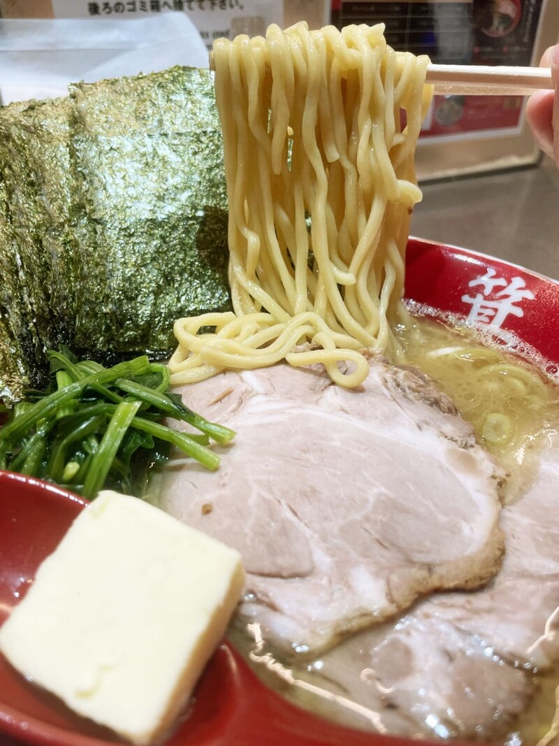 ダルビッシュ有さんが絶賛したラーメンということで、期待を高めつつズズッとスープをすする。……うまい。しっかりうまい。海苔がたくさん。これ地味に嬉しい。海苔がオマケ程度にしかないと「あってもなくてもいい存在」にも思えるが、海苔4枚か5枚くらい入ってて良き。