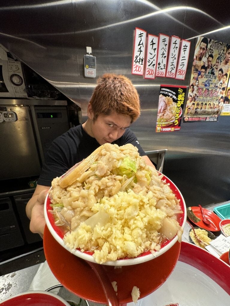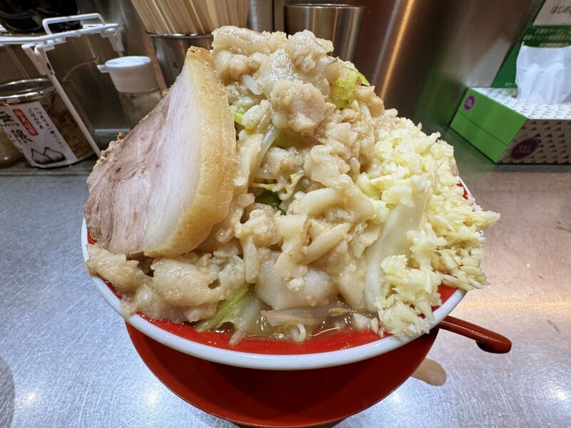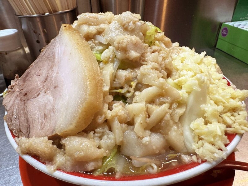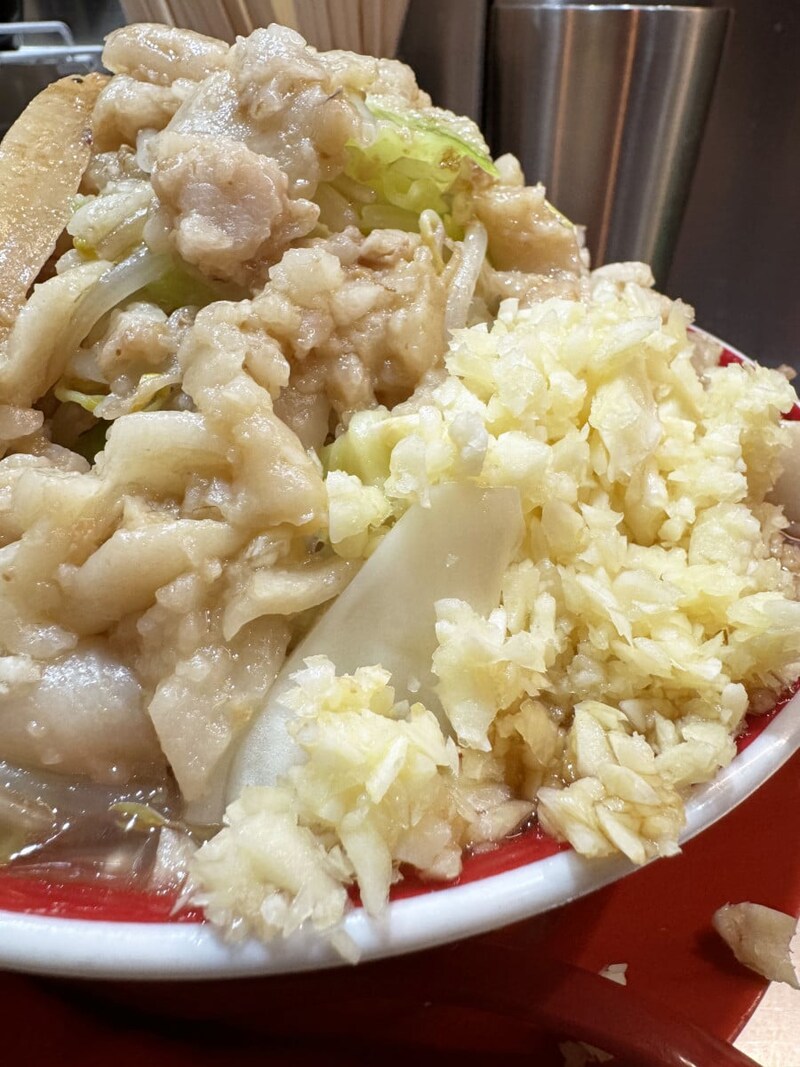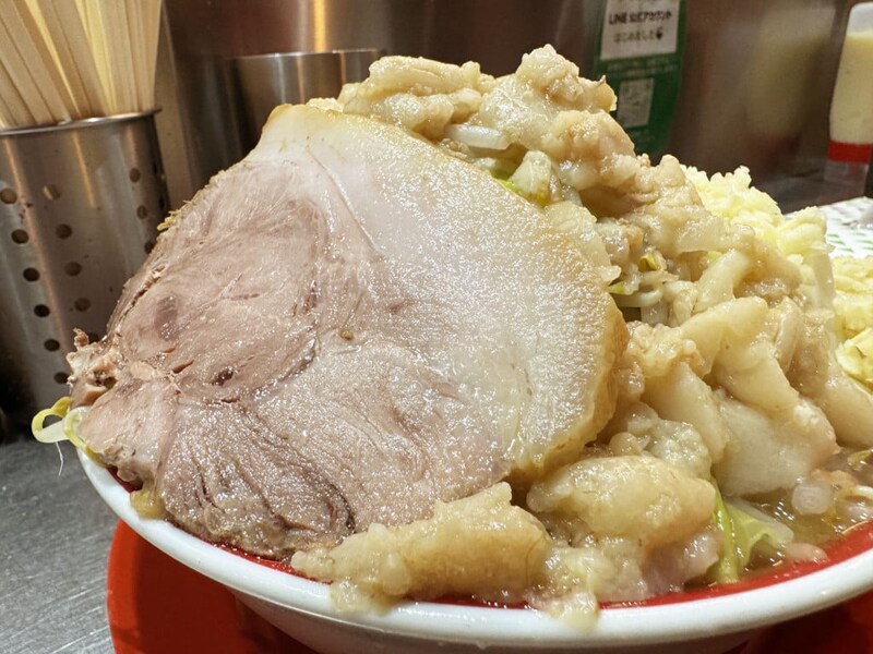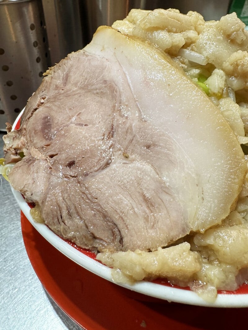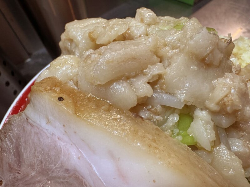 まず、アブラカタマリがたっぷりのったヤサイを食べる。んんっ!? なんかこれ! なんかこれ違う! なんかこれ、なんかこれ、なんかこれウマイぞこれ! 最初の衝撃が麺ではなくヤサイからやってくるとは思わなかった。とにかくヤサイがディープにウマイのである。