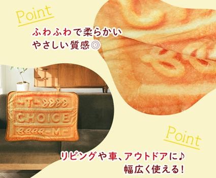 人気ビスケット「チョイス」を忠実に再現したビジュアルと、ふわふわでやさしい触り心地がポイントのブランケットです。
