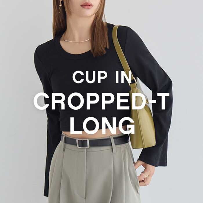 『バンビウォーター カップ イン クロップドT ロング』(¥4,590税込)は、短すぎない絶妙な丈感でヘルシーな印象に。