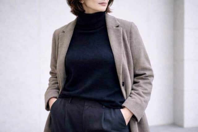 黒のタートルネックは、きちんと感があり、冬の定番として頼りになるアイテムです。ただ40代・50代になると、「顔色が沈んで見える」「全体が重たく感じる」といった違和感が出やすくなることも。その原因は、アイテムそのものよりも“顔まわりに集まる色と質感のバランス”にあります。ほんの少しの調整で、黒タートルはぐっと上品で洗練された印象に変わります。