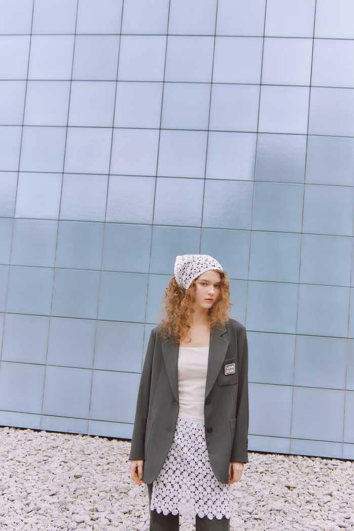 JACKET20,900円とSKIRT10,450円の組み合わせでは、端正さの中に女性らしい余韻をプラス。