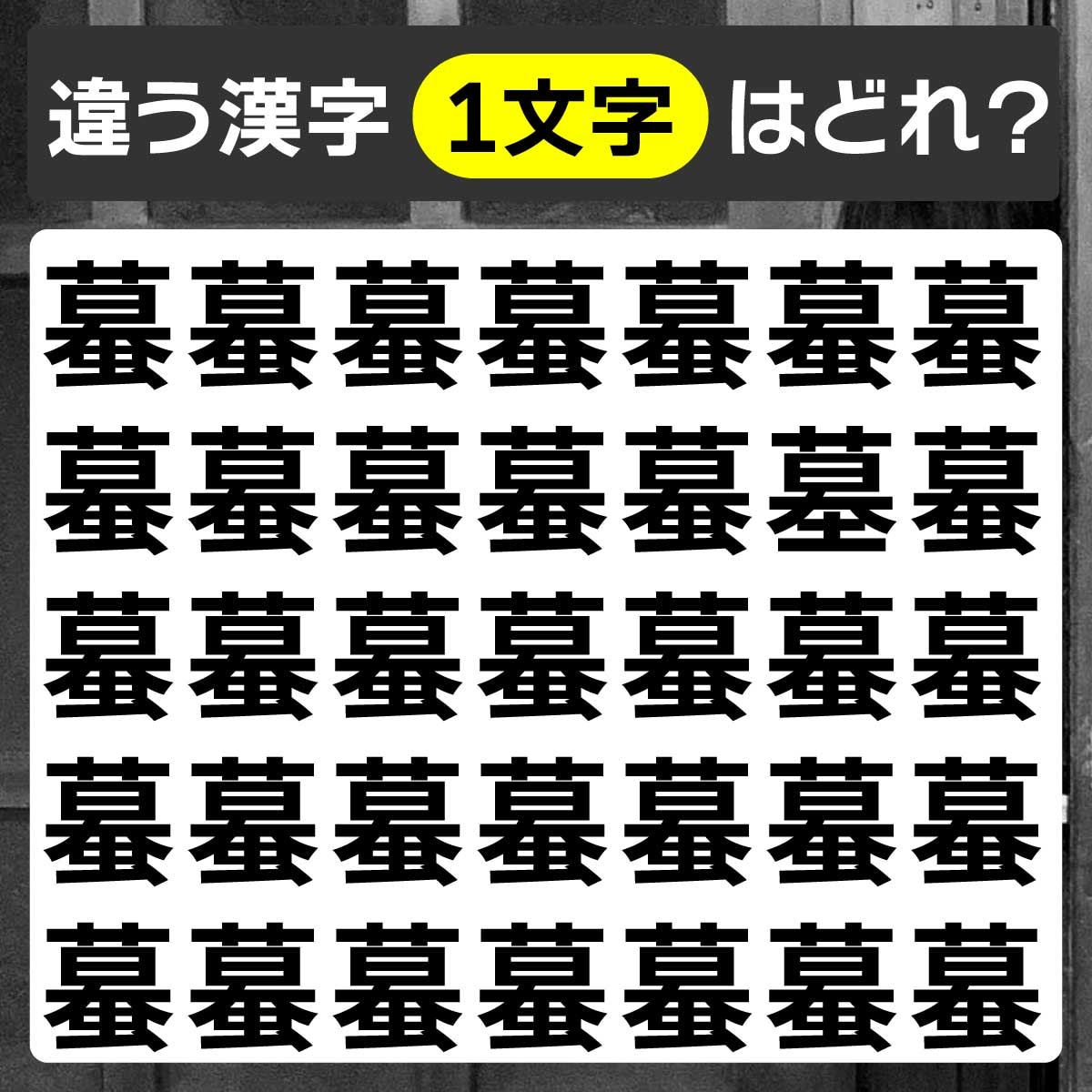 毎日配信中「毎日脳トレ」の時間です! 本日のクイズは「漢字のまちがい探し」に挑戦♪ 同じ漢字が並んでいるように見えますが、実は1つだけ違う漢字が……。よ~く探してみてください!