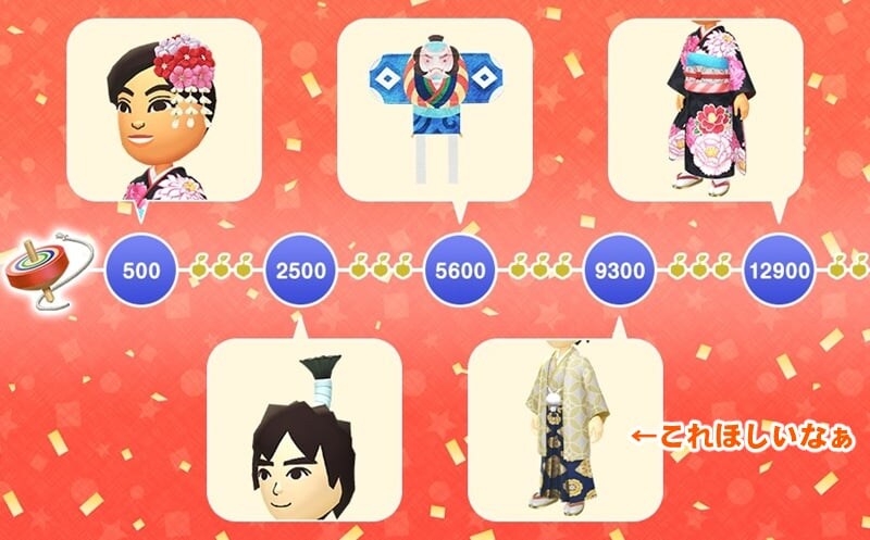 個人的には、13番目の報酬にある紋付き羽織袴もゲットしたいところ。