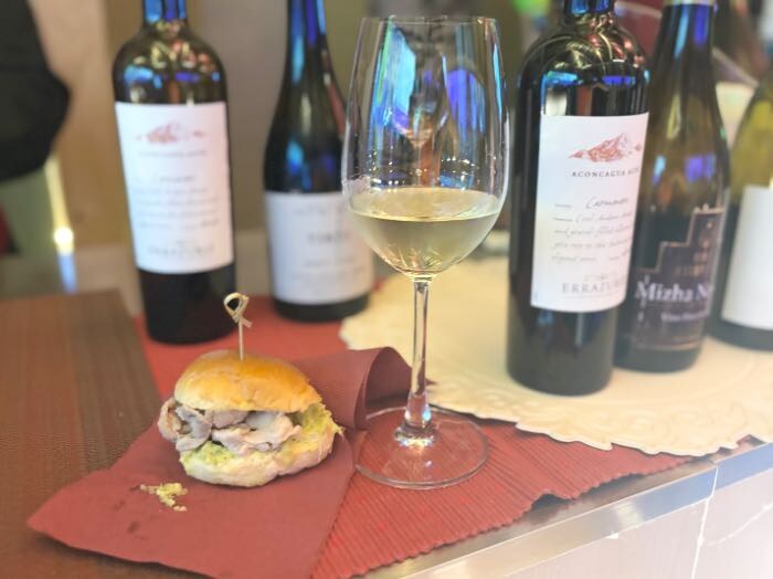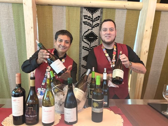 カウンターに並ぶ、種類豊富なチリワインをすべて無料で試飲できるのは、ワイン好きにはたまらない体験。お気に入りの一本に出会えるチャンスです。