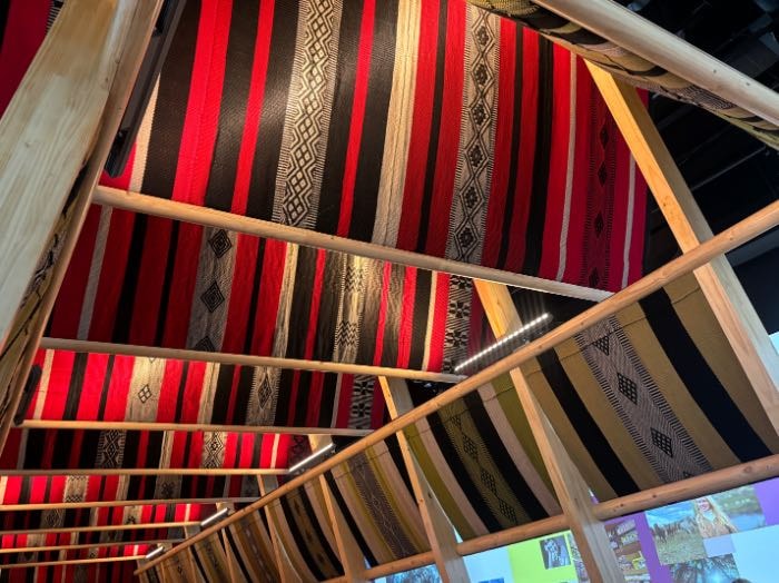 マプチェ族に受け継がれてきた伝統的な織物文化を象徴する存在で、約200人の織り手によって制作された巨大な手織り布が、パビリオンの中心的なアートとして展示。