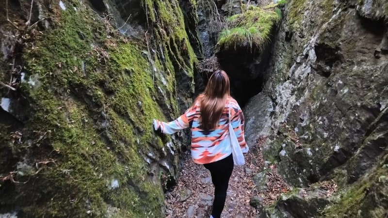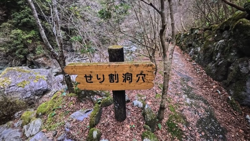 「せり割洞穴」っていうらしくて、中に入ると一気に空気が変わる感じで、普通に神秘的すぎた。