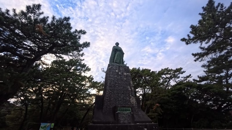 駐車場から歩いていくと、まず目に入るのが坂本龍馬の大きな背中。