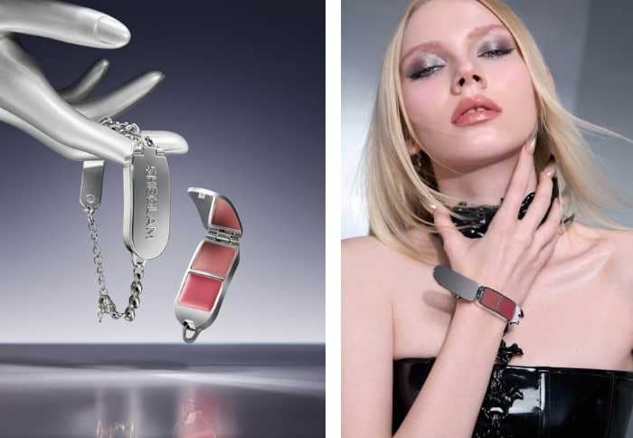 「Lip Link Mini Gloss Bracelet Palette」は、1,303円、1色展開。ツヤ感のあるリップカラー2色をブレスレット型ケースに収めた遊び心あふれるアイテムで、外出先のメイク直しにも便利です。