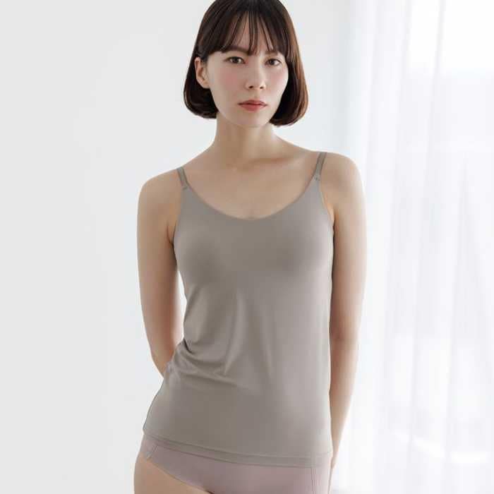 「ブラインサラキャミソール」や「カップインリブUバックキャミソール」は、特許取得(*1)のCOMBINE製法により360°きれい見えを実現。