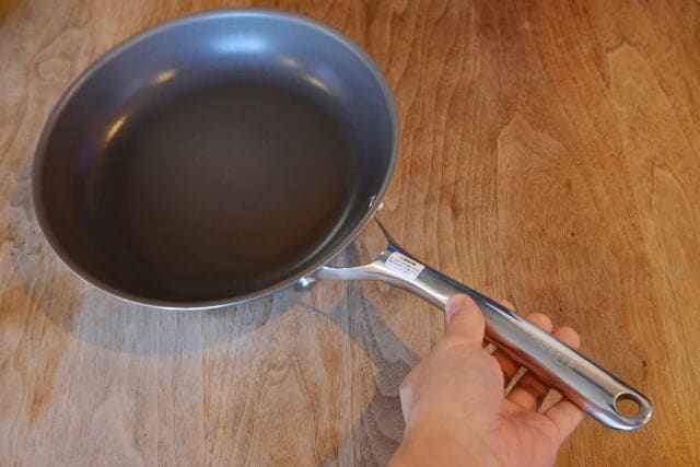 持ち手の部分も金属で、根元には『高温注意』的なステッカーも貼ってありますが、今回3品調理したケースでは、持てなくなる熱さにはなりませんでした。もちろん根元には注意が必要ですが、基本的にミトンやタオルは必要ないと思います。