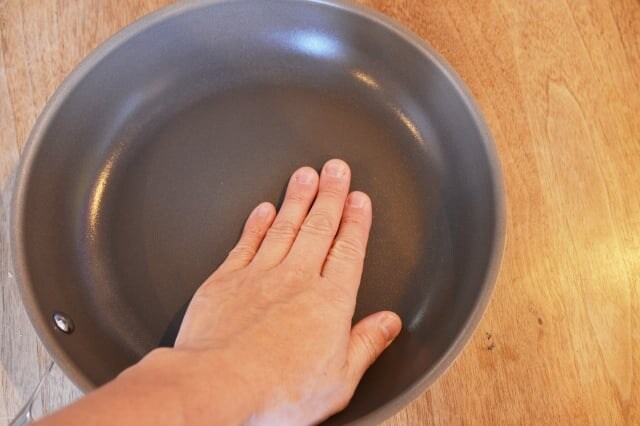 前述の『オイルクリーニング』は、過去にフライパンの自己メンテナンスをしたことがない人は手間に感じるかもしれませんが、逆に“育てる系”の鉄フライパンなどを使ってきた人にとっては、まったく気にならないはず。ということで、いよいよ調理へ!