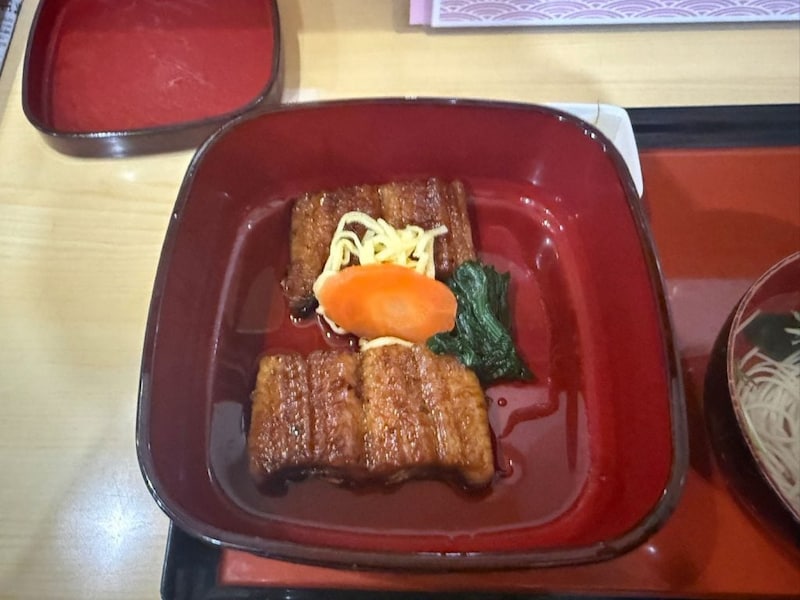 うなぎが3切のった丼が到着。薩摩川内市で自社で養殖しているというこちらのうなぎ。食感はサックリでフワっとしており、なんとも素晴らしい焼き具合。タレの味も申し分なく、このお値段でコレを食べることが出来るのか!と大満足だった。