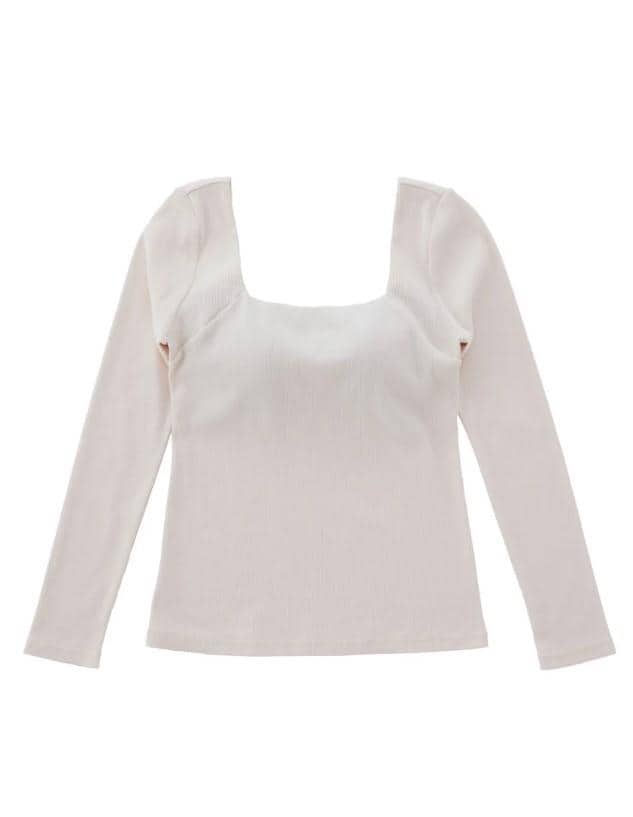 カップインスクエアネックリブTシャツ アウター トップス(カップ付き)