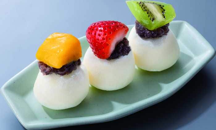 「雪見フルーツだいふく」は454円(税込499円)。ミニ雪見だいふくとあんこに、マンゴー、いちご、キウイを添えた可愛らしい一皿です。