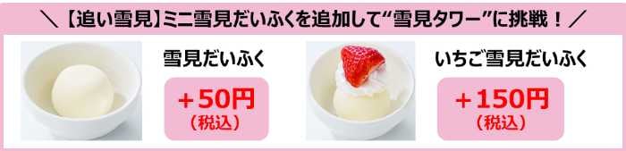 全スイーツ共通で楽しめるのが、「追い雪見(※)」。ミニ雪見だいふくを1個50円で追加でき、自分好みの“雪見タワー”にアレンジ可能です。
