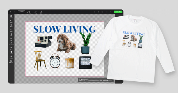 WEBブラウザ上で、デザインから注文・入稿まで完結するデザインシミュレータのロングTシャツも25%OFFセール対象です。