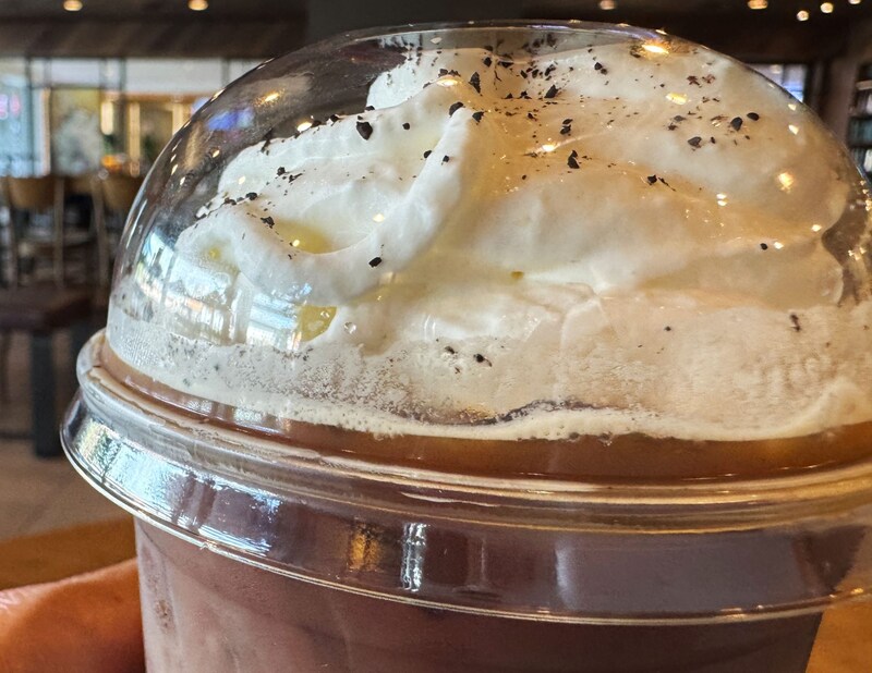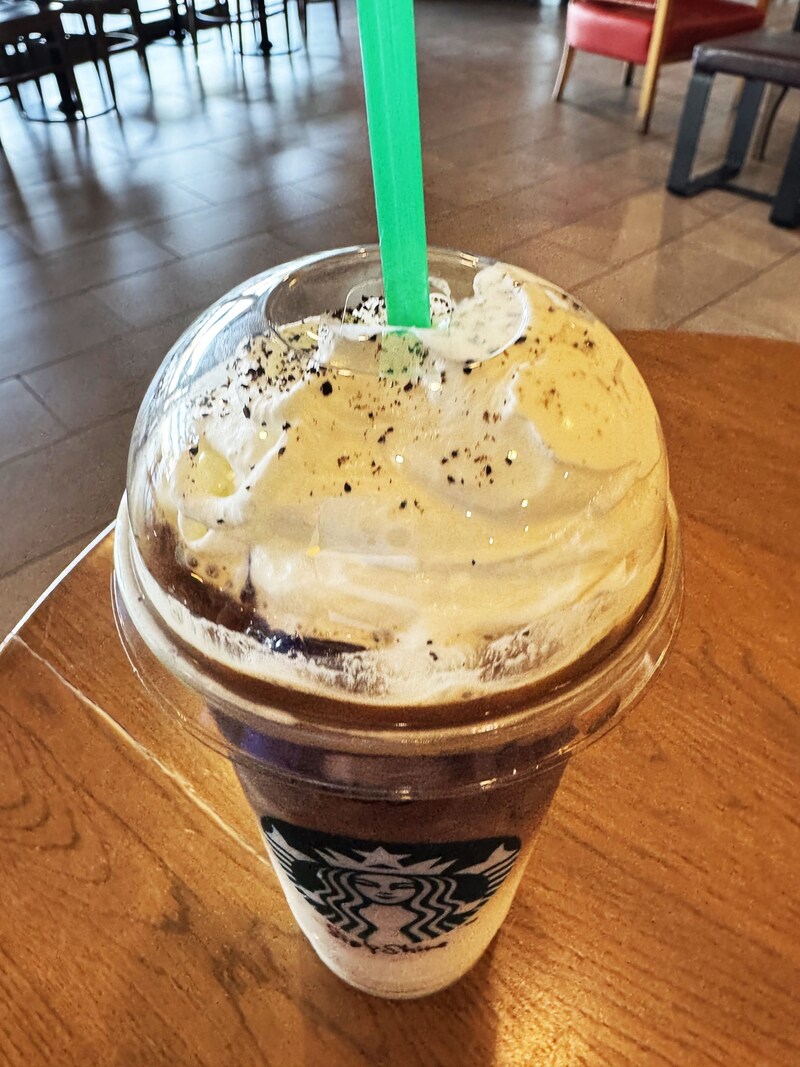 さっそくストローを挿して飲みます。ああっ!! キター! すっっっっっっっっっごく甘いのキター! フラペチーノ系はかき混ぜず、ストローを刺したら、あとはすするだけ! ……という飲み方がベストだと思っているのですが、最初のひと吸いから、ギュンギュン強い甘味が訪れます。練乳キター!