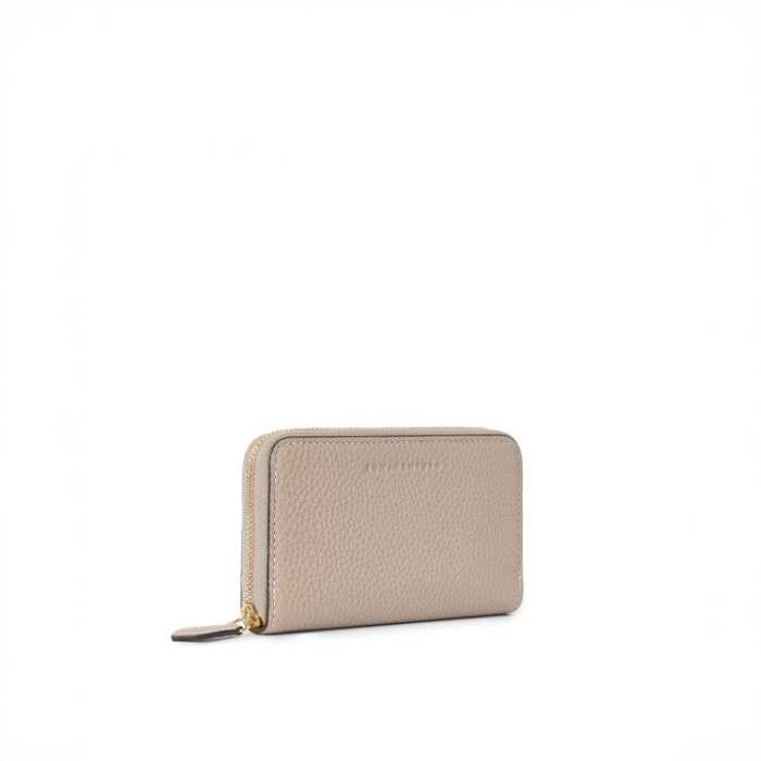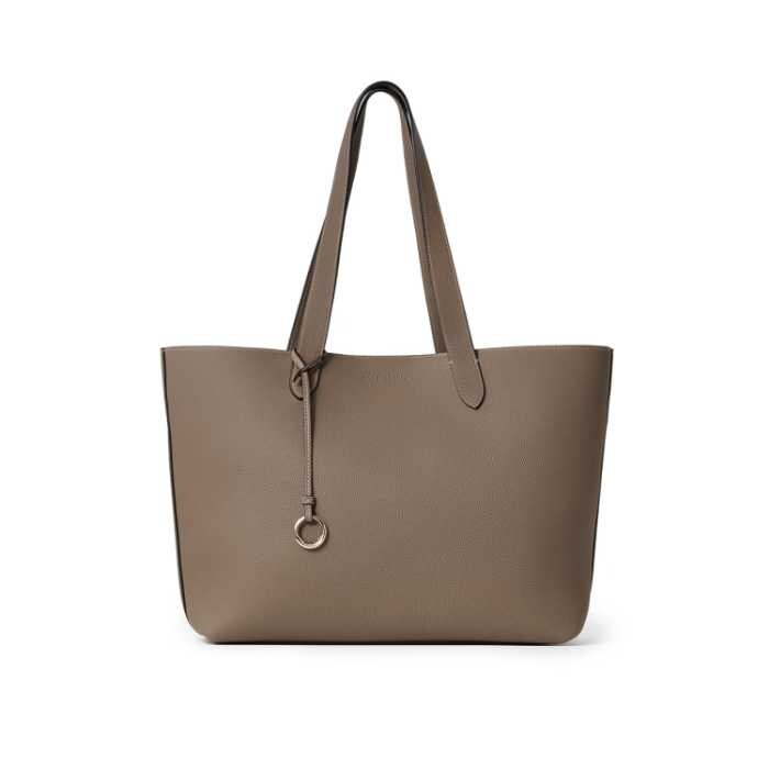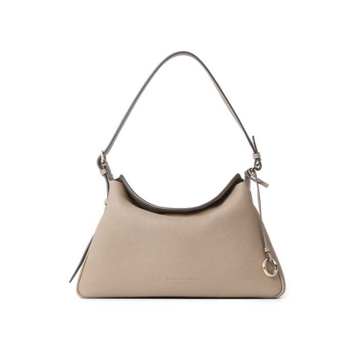 ヨーロッパ製のソフトレザーを贅沢に使用し、ライトゴールドのリングがさりげないアクセントに。カラーはエトープ、グレージュ、ブラック、アイボリーの4色。