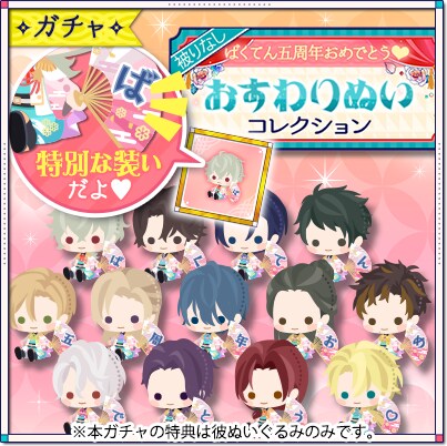 企画3.:5周年ガチャ「おすわりぬいコレクション」が登場!