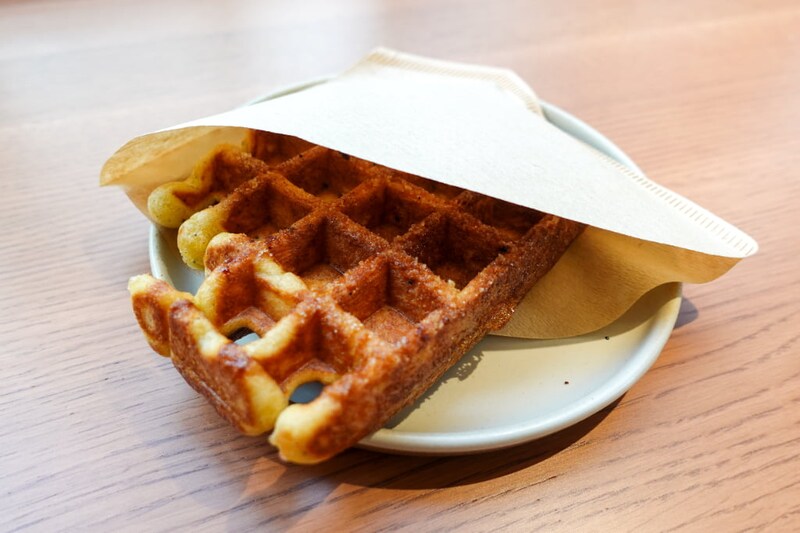 「ブルーボトルコーヒー」創業時からのアイコンメニューとなっている「リエージュ ワッフル」もお忘れなく。バニラビーンズを贅沢に使用したワッフルは、味わい深いけれど意外とあっさりと食べきれます。ラテのミルクフォームをディップして食べるのもおすすめです!