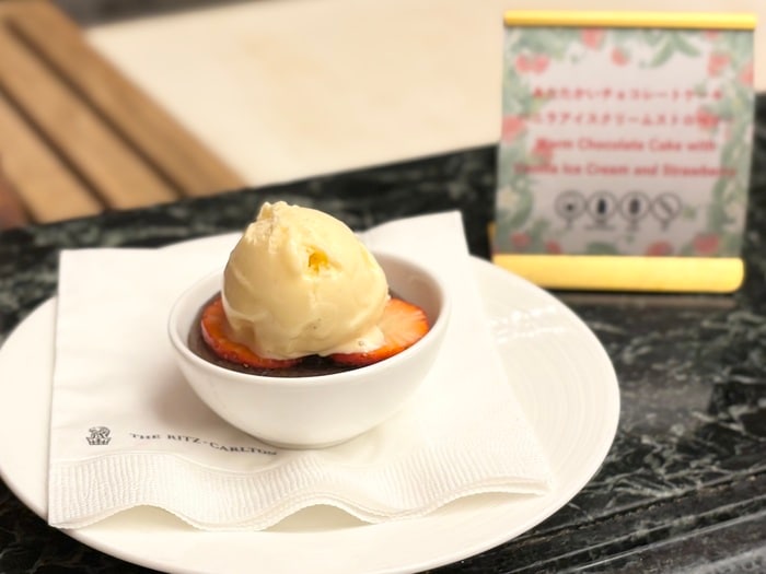 あたたかいチョコレートケーキ バニラアイスクリームストロベリー