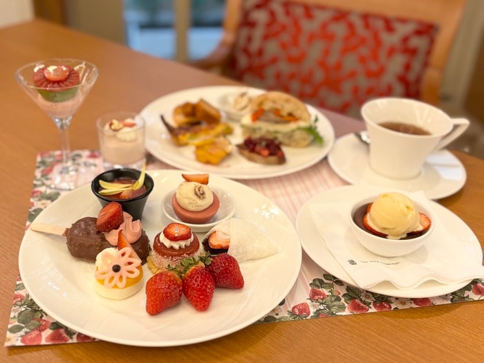 ホテル自家製のマスカルポーネチーズを使用した「いちごティラミス」や、ミルキーでトロピカルな風味の「いちごとココナッツのパンナコッタ」など、手に取りやすい小皿に盛り付けられているのも嬉しいですね。