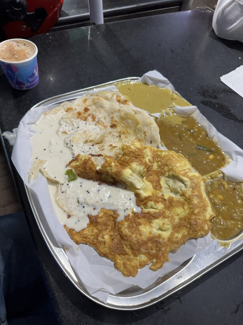玉子焼きをカレー等に浸して食べると絶品。そもそもカレーやスープがかなり素朴でストレートなテイスト。食材の味の良さを最低限の塩味で引き出している感がある。つまり、毎日食べても飽きないインドメシ。「Thangaraj」(Thangaraj / MP9Q+JWM, Biggie Line, Sri Vijaya Puram, Andaman and Nicobar Islands)。