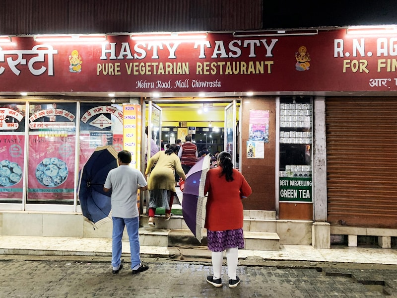 ……そうか、パパドの油をチャパティが受け止めているのか。だから熱いわけだ。食べる。チャパティに激アツのパパドアブラ浸透しててうまい。カレーは素朴。カレーは煮物であると考えれば、これは間違いなく真のカレー。「Hasty Tasty」(27V8+4M3, Gandhi Rd, Chauk Bazaar, Darjeeling, West Bengal India)。