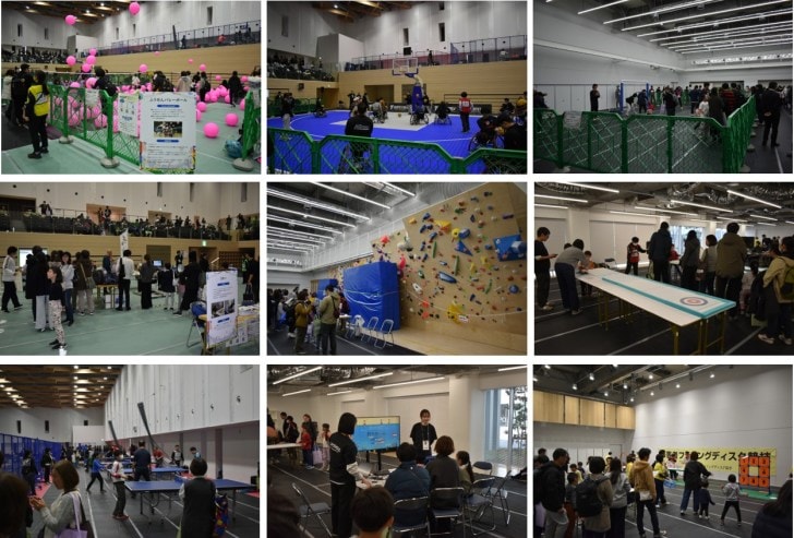 今年の会場には、車いすバスケットボール、スキー、卓球、ビームライフル、ブラインドサッカー、ボルダリング、eスポーツ、カーレット、SASSEN(サッセン)、スクエアボッチャ、ふうせんバレーボール、フライングディスク、ボーネルンドからだ遊びなど、13の体験ブースや展示コーナーが出展された。