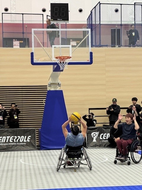 「車いすバスケはテレビでしか見たことがなく、ぶつかり合ったりとにかく激しいイメージがありました。コートの大きさやゴールの高さが通常のバスケと同じと聞いてびっくりしました」とコメント。