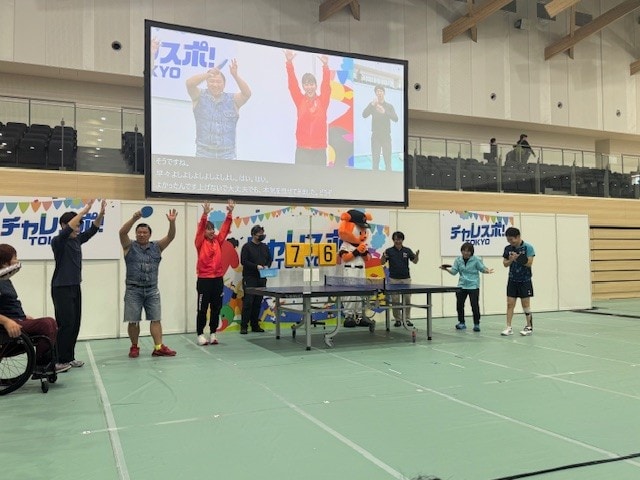 卓球では、スギちゃんとデフ卓球選手・亀澤理穂選手、フィギュアスケート元日本代表の高橋成美さん、パラ卓球選手・岩渕幸洋選手によるダブルス戦が行われた。学生時代に授業で卓球を経験していたというスギちゃんは、意外な健闘を見せて7対6で勝利。「プロ選手のスマッシュはやっぱり速いし、うまいなと思いました」と笑顔を見せた。